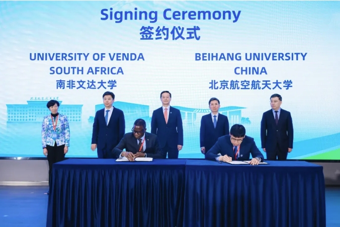 南非文達大學校長Ndanduleni Bernard Nthambeleni、趙巍勝代表雙方共同簽署《北京航空航天大學與南非文達大學合作備忘錄》。根據協議,兩校將在建立聯合實驗室、加強師生互訪交流、聯合舉辦學術會議、合作發表論文等領域加強合作。