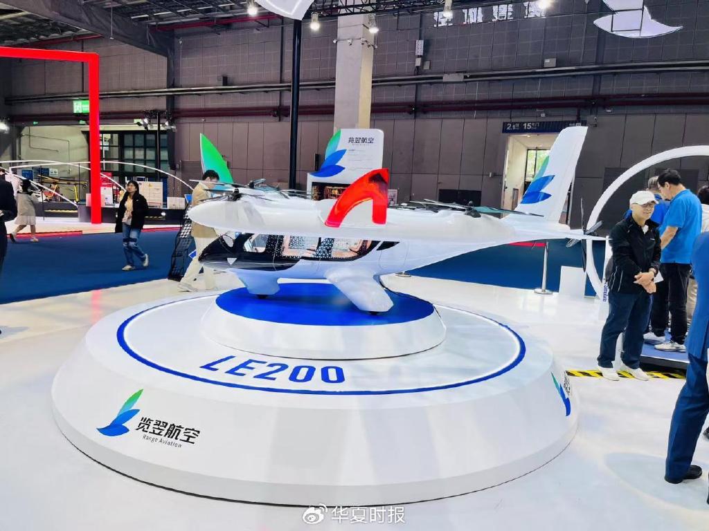 來自安徽合肥的覽翌航空也在進博會現場首次發布旗下產品。覽翌航空創始人、總裁黨鐵紅向《華夏時報》記者表示,LE200的最大起飛重量2600kg,航程140km—320km,航速200km/h,可載客2—5人,該機型于2023年9月完成縮比驗證機的研制及試飛,目前正在研制全尺寸工程樣機。另一款名為名LEU100的中型電動垂起物流無人機,最大起飛重量140kg,最大航程200km,設計巡航速度120km/h,最大商載可達55kg,今年8月已獲民航局受理,預計2025年完成適航取證,2026年交付市場。
