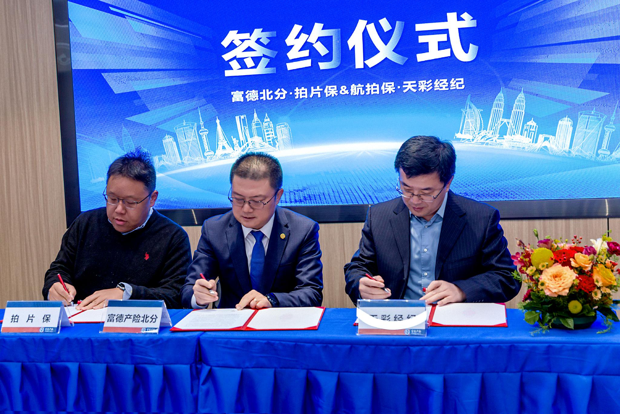 發布會上,富德產險北京分公司總經理蘇佳玉、拍片保總經理夏良、天彩經紀北京分公司副總郭雪共同簽署合作協議,完成首單系統錄入,標志著合作正式啟動。