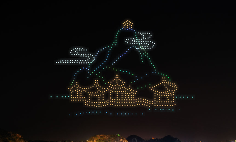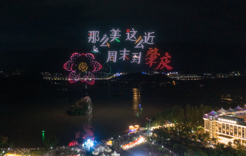 德慶縣舉行“相約德慶”2024年流行音樂節(jié)暨無人機演出活動。當晚,1388架無人機騰空而起,在夜空中繪就絢爛圖景,裝點了浪漫的七夕之夜。