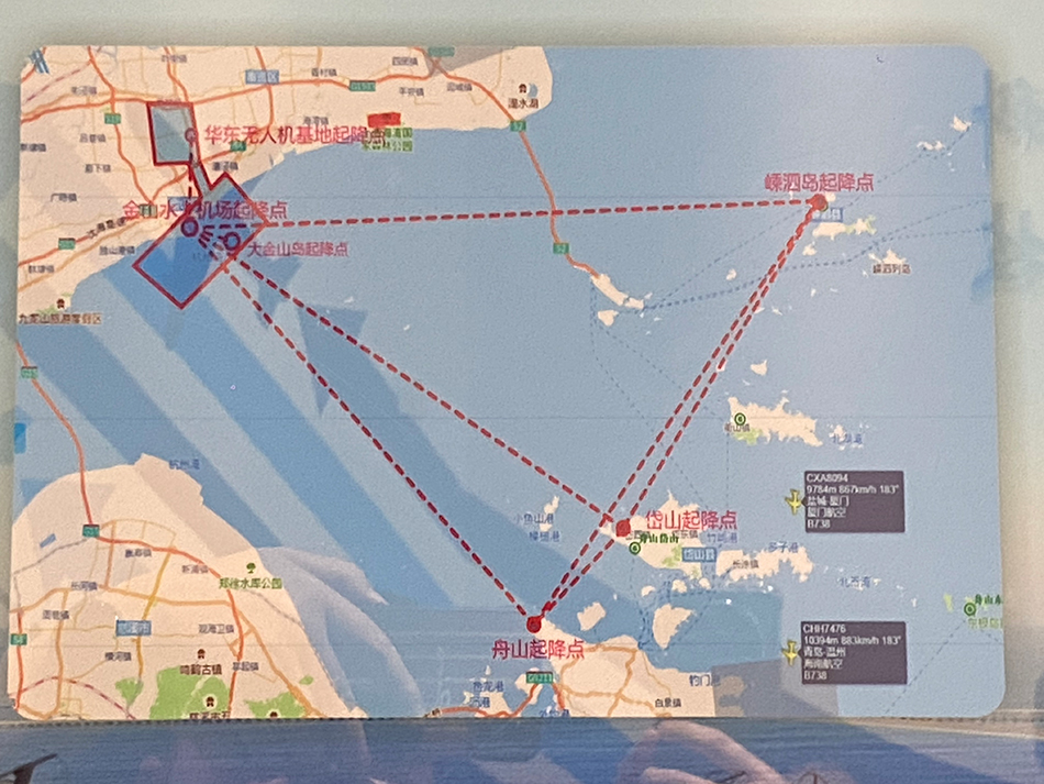 華東無人機(jī)起降點、上海金山水上機(jī)場起降點、大金山島起降點與浙江嵊泗島起降點、岱山起降點、舟山起降點等組成了三角形的海島運輸應(yīng)用場景。