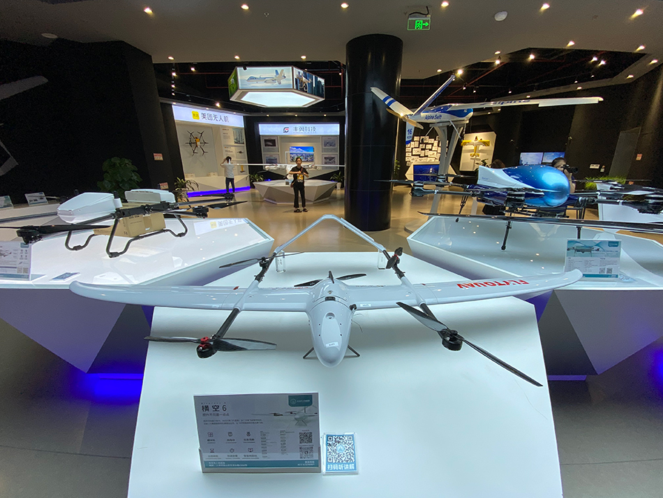 華東無人機(jī)基地內(nèi)展示的各款無人機(jī)