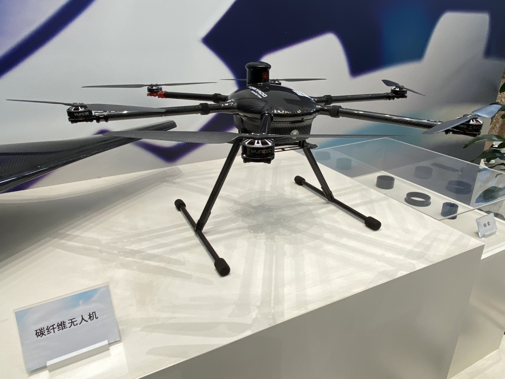 上海石化展廳內(nèi)展示的兩款碳纖維無人機(jī)