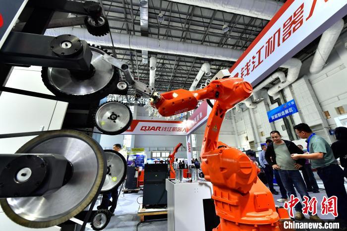圖為參展企業在展會上展示的機器人生產設備。中新網記者 張斌 攝