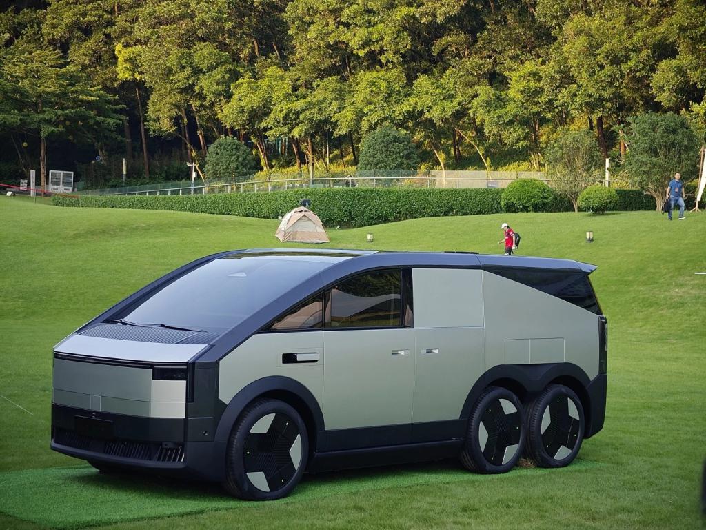 ” 陸地航母 ” 的陸行體被形象地稱為 ” 母艦 “,采用三軸六輪設計,具備 6×6 全輪驅動及后輪轉向功能,承載能力和越野能力出眾。車身長度約 5.5 米,寬和高均為 2 米,可輕松停入標準停車位,并具備 C 照即可駕駛的便捷性。車內為四座設計,寬敞舒適,同時后備廂用于收納飛行體,實現(xiàn)了空間的最大化利用。