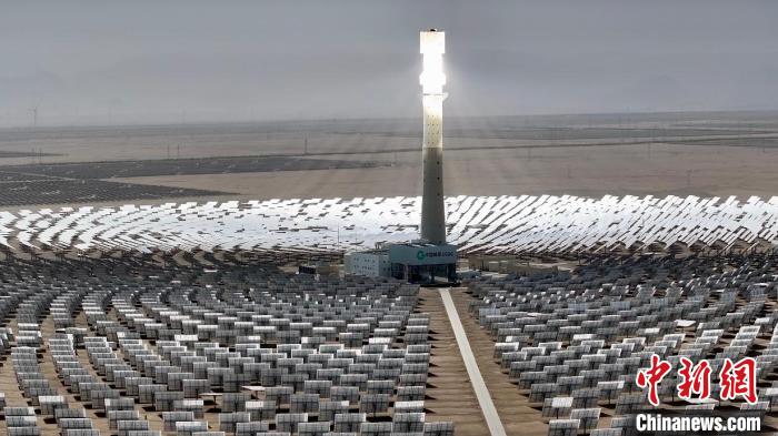 圖為航拍青海省海西蒙古族藏族自治州格爾木市光伏光熱園。趙凜松 攝