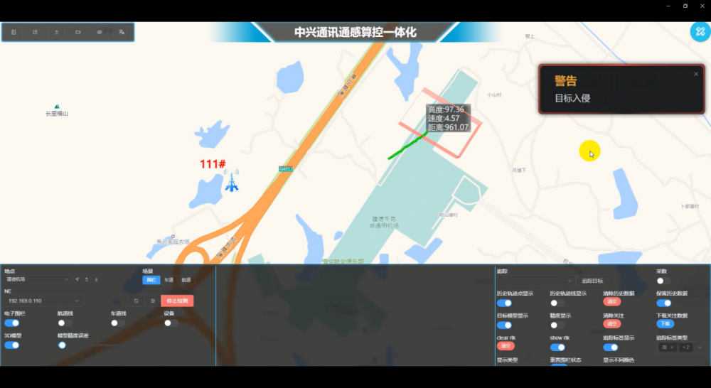 “我們采用128TR自發(fā)自收的5G-A通感一體化基站,通過超大規(guī)模陣列、連續(xù)波加脈沖波等領先技術完成對建德航空小鎮(zhèn)通用機場區(qū)域的全天候感知監(jiān)測,實現(xiàn)對機場直升機150米最高飛行高度和9m/s最大飛行速度的全程精準感知和實時上報。”浙江移動工作人員介紹道:“同時在指定區(qū)域構(gòu)建禁飛區(qū)電子圍欄,只要有非法無人機進入電子圍欄就能被感知,并發(fā)出告警,保障航空小鎮(zhèn)空域安全。”