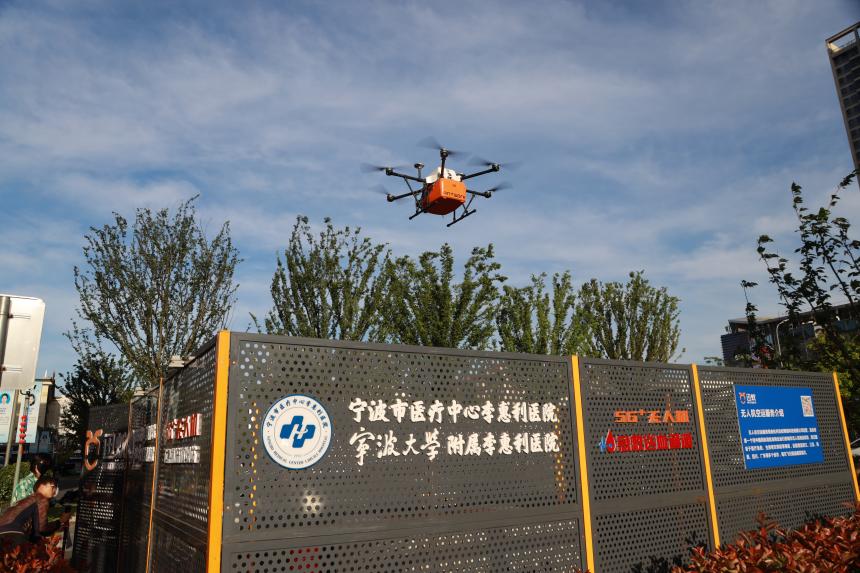 “急救血小板已拿到,無人機起飛就緒。”“無人機已順利降落,血液交接完畢。”一架裝載著急救血液的無人機從寧波市中心血站起飛,歷時12分鐘穩(wěn)穩(wěn)地降落在11公里外的寧波市醫(yī)療中心李惠利醫(yī)院東部院區(qū)的無人機應急物流樞紐站,等候的工作人員立即取出血液用于患者緊急救治,整個運送過程比地面運輸節(jié)省了超過60%的時間。