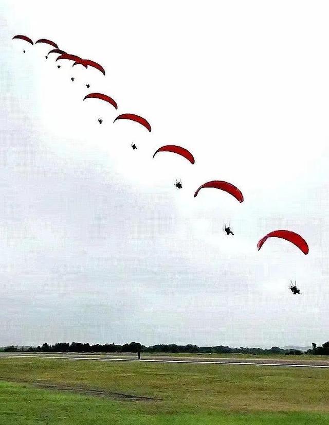 位于邯鄲市肥鄉(xiāng)區(qū)的展翼航空科普教育基地組織開展航空嘉年華活動,圖為動力滑翔傘編隊進行飛行表演(資料片)