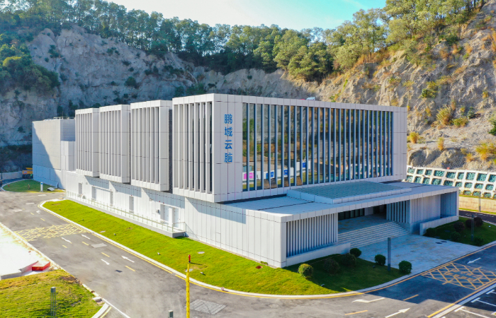 圖為首個(gè)全面自主可控的E級(jí)智能算力平臺(tái)“鵬城云腦”網(wǎng)絡(luò)智能重大科技基礎(chǔ)設(shè)施外景圖。(鵬城實(shí)驗(yàn)室供圖)