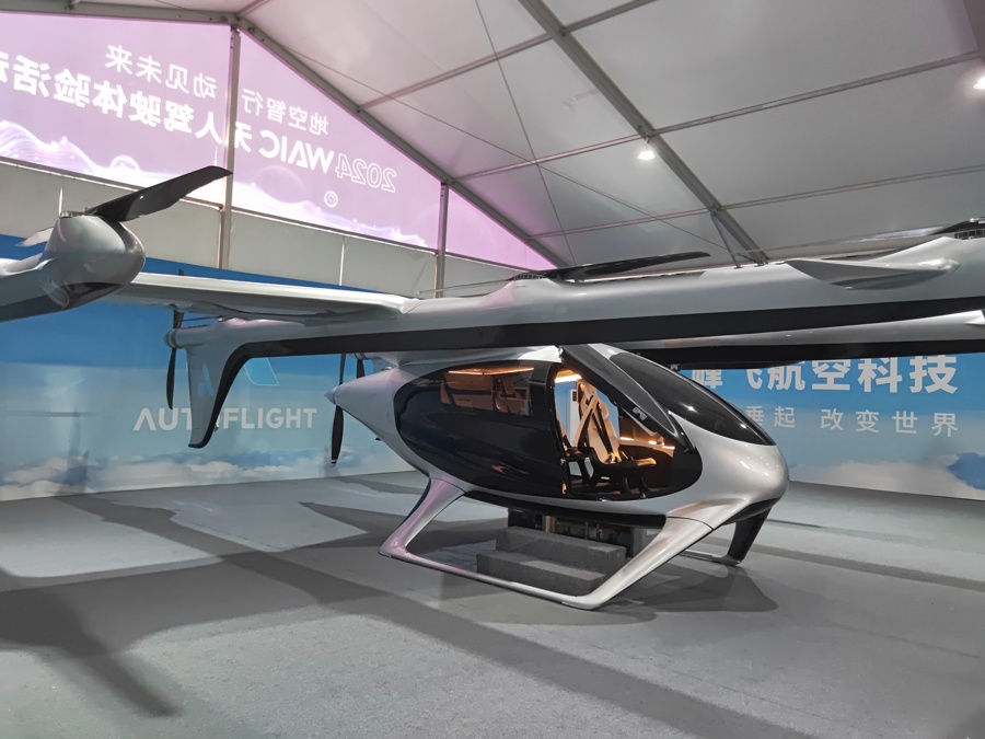 觀眾在2024世界人工智能大會現(xiàn)場體驗乘坐無人駕駛低空航空器。
