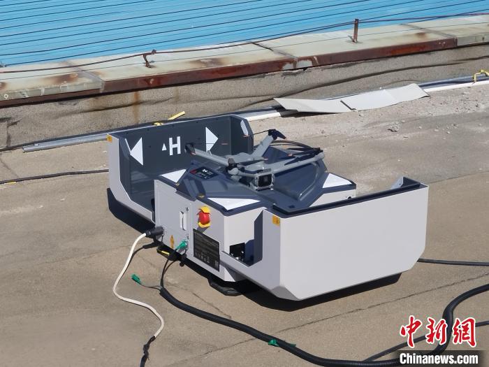 無人機正在自動起飛,將對輕軌沿線進行日常巡檢任務。譚偉旗 攝