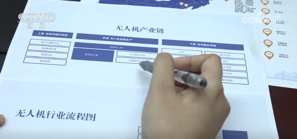 在這張無人機產業鏈圖譜上,按上中下游將產業鏈細化成幾十個部分,小到材料大到應用領域,都一目了然。還將產業鏈龍頭企業的名稱、所在地,在地圖上清晰地標了出來。