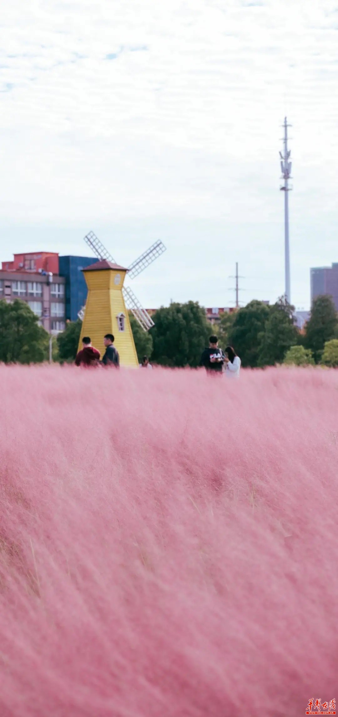 這是來自湖南中醫藥大學校園里獨一份的限定浪漫。粉黛雖生而為草,但有顆成花的心。當無數棵粉色小草聚集起來,便形成了粉色的海洋。它如煙如霧,如夢如幻,朦朧在石板路旁,是秋天不可錯過的美景。靠著粉黛,或直接坐在粉黛中間,都很出片。