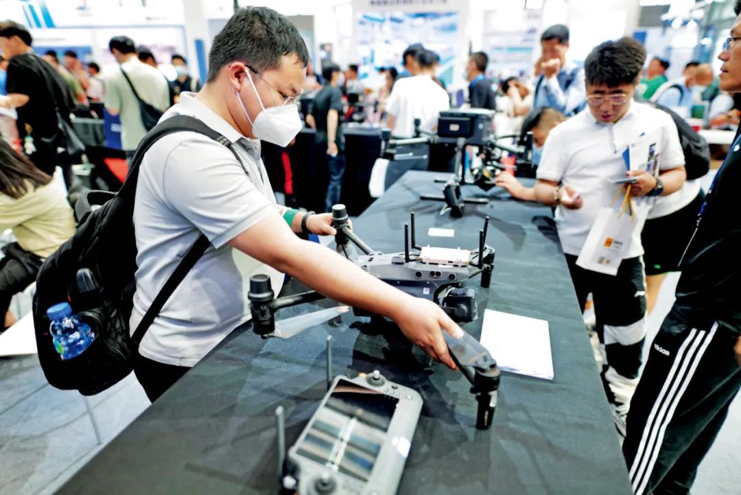 2023年6月2日,第七屆世界無人機大會暨第八屆深圳國際無人機展覽會上,觀眾參觀大疆無人機。攝影/本刊記者 陳文