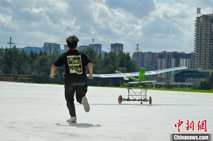 10月14日,四川巴中,賽場上參賽選手正放飛參賽飛機。當日,2024年中國國際飛行器設計挑戰賽總決賽暨科研類全國航空航天模型錦標賽比賽在四川省巴中市拉開序幕,參賽選手將在賽場上一決高下。中國國際飛行器設計挑戰賽是目前中國唯一集飛行器設計、制造、飛行與控制于一體的面向全國高校和高中學生的賽事。中新社記者 劉忠俊 攝