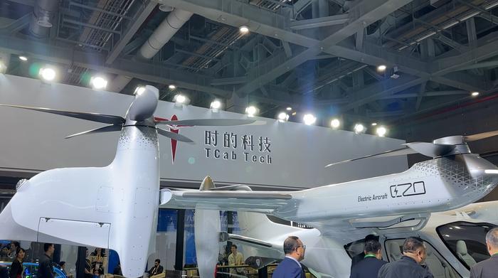 而一旁的時的科技則帶來了一架自主研發的E20 eVTOL航空器,其翼展12米,可搭乘5人,具備速度快、載重比大、成本低等特點。作為時的科技的進博會首秀,公司直接帶來一架真機展出,并發布E20 eVTOL全新客艙,擁有全景視窗、豪華座椅、新風空調、機載娛樂視頻、無線智能充電、隨身行李艙等。