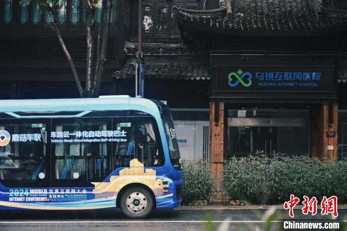 2024年世界互聯網大會烏鎮峰會期間,蘑菇車聯為近千家參會媒體提供自動駕駛巴士接駁服務。中新社記者 陳溯 攝