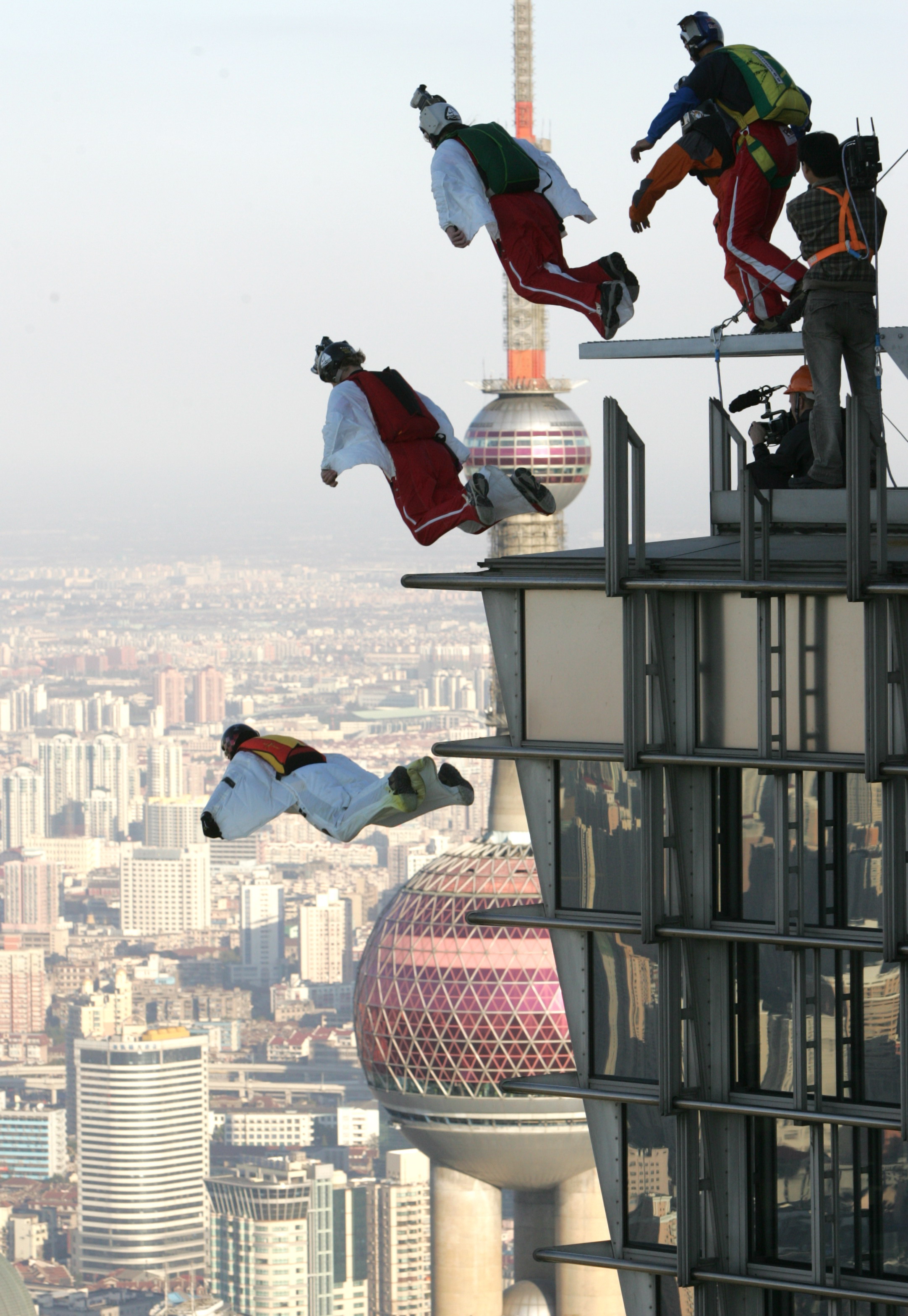 2003年10月6日,15位世界頂級低空跳傘運動員從上海金茂大廈88層平臺跳下,起跳高度345米,超過了馬來西亞 “雙子塔”表演跳傘時280米的起跳高度,創(chuàng)下了世界高樓跳傘的最高紀(jì)錄。當(dāng)時,420.5米高的金茂大廈是世界第三高樓。