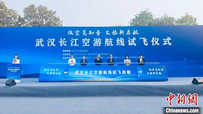 中新網武漢11月15日電 (王夢媛 黃璜)武漢首條長江低空游覽航線試飛儀式15日下午在該市漢陽區南岸嘴江灘公園舉行。隨著起飛指令下達,一架載人直升機騰空而起,長江、漢江以及武漢地標級景點盡收眼底。據了解,該項目預計于今年12月正式對公眾開放。