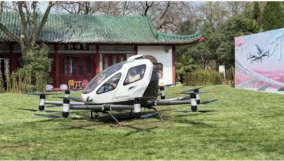 今年3月,櫻花盛開的時節,億航智能研發的EH216-S無人駕駛載人航空器,在武漢東湖風景區完成商業載人首飛。
