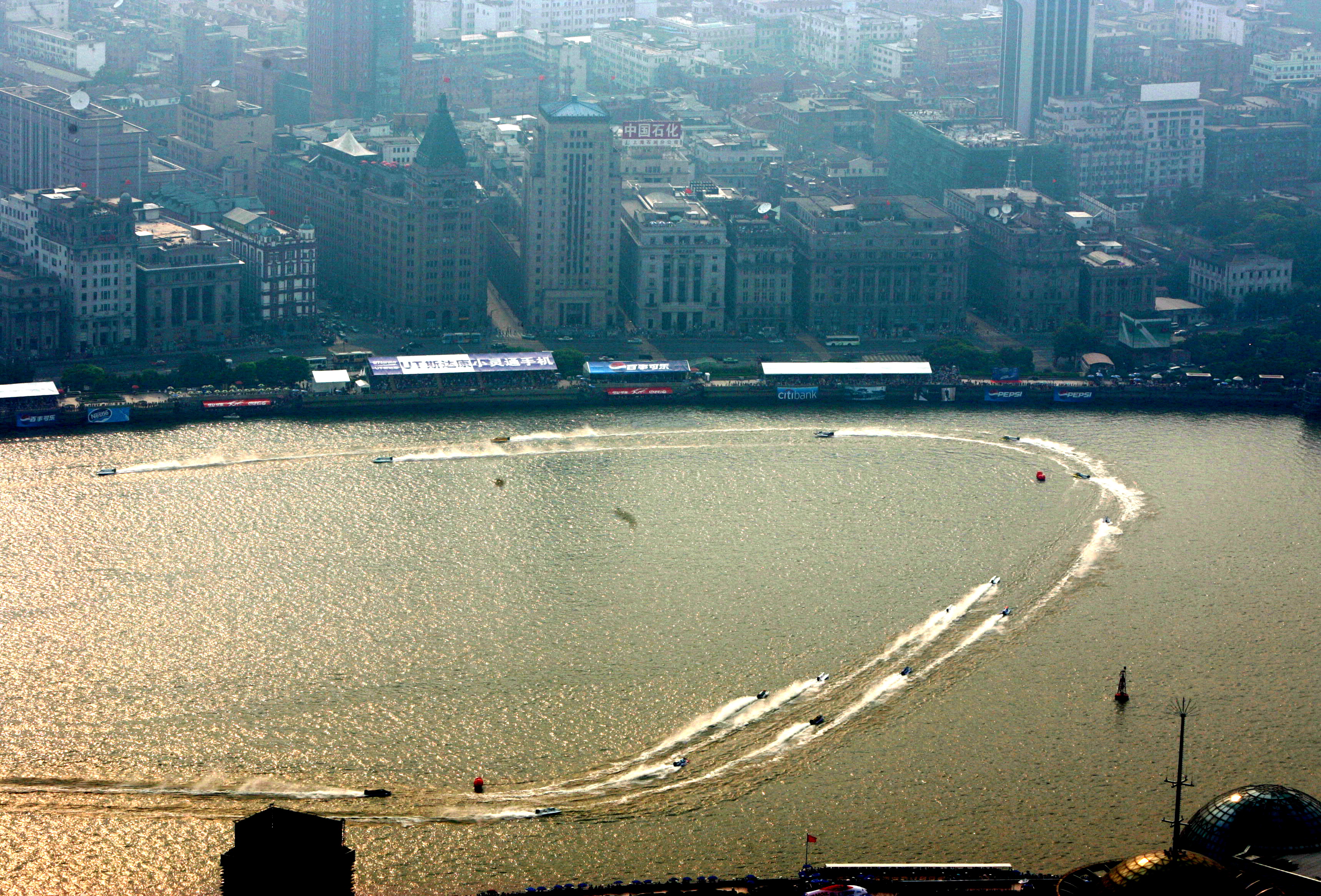 2004年7月31日到8月1日,上海黃浦江外灘段首次為體育賽事封江。這項體育賽事便是F1摩托艇大獎賽上海站比賽。王杰 攝