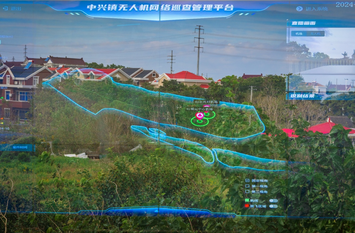 “兩架無人機對區域內13個村居委基本實現巡查覆蓋。目前,每天定時上午9點起飛,按照設定好的航線進行空中巡查。如果有臨時需求,也可以靈活設定航線。”中興鎮城市運行管理中心主任張峰表示。