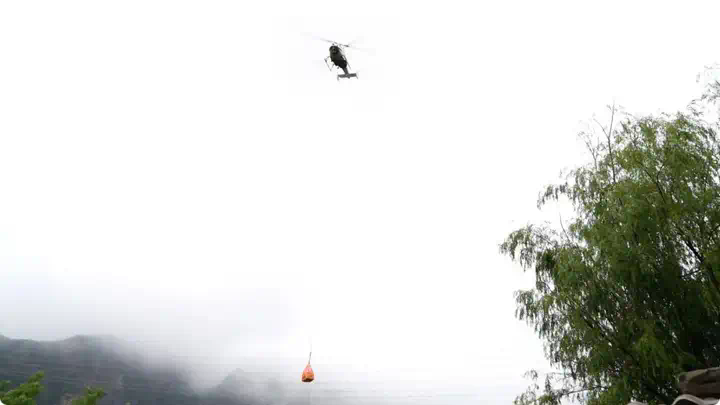 大載重無人機TD550 和 T1200 憑借其卓越的環(huán)境適應性和強大的飛行能力,在惡劣天氣下依然穩(wěn)定作業(yè),成功克服地面無合適降落場地的難題,可將救援物資及時送到被困人員手上。在2023年京津冀地區(qū)特別是北京門頭溝區(qū)遭遇的嚴重洪澇災害中,TD550利用其卓越的懸停技術,在空中精確投放數(shù)百公斤的飲用水與食物,直達受困村莊,為受災群眾送去了生命的希望,展現(xiàn)了無人機在極端條件下的非凡救援能力。