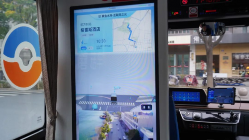 作為一款高科技的出行工具,一踏入車廂,仿佛走進了一個“科技秀場”,每個角落都散發(fā)著“未來感”。乘客可以通過車內的顯示屏,輕松獲取到站信息、三維可視化路況,看到駕駛室里雙手離開方向盤的安全員。方向盤右側,配備了一塊顯示屏,上面有對車流、車速、交通事件的精準監(jiān)測,道路交通場景實時數字化全息呈現。在乘客座椅旁,還設有USB充電口,方便乘客隨時為手機等設備充電。平穩(wěn)起步、自動避讓、靈活變道、安全轉向、精準到站……這輛“聰明的車”動作流暢得就像有“老司機”親自駕駛。