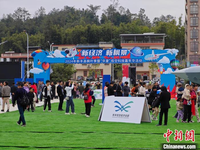 中新網韶關11月24日電 (程景偉 李欣昕 陳欣欣)廣東省韶關市新豐縣被譽為“嶺南紅葉之鄉”。“新經濟 新楓景”2024年新豐縣楓葉季暨“華夏”低空科技嘉年華開幕式23日在該縣舉行,為游客提供了空中欣賞“新楓景”的旅游體驗,助力當地低空經濟發展。