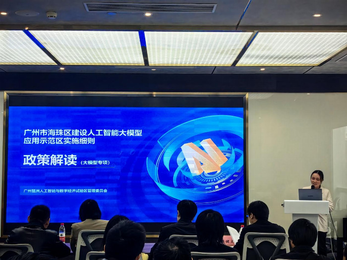 會上,廣州琶洲人工智能與數字經濟試驗區管理委員產業科王潔麗科長向參會人員分享《廣州市海珠區建設人工智能大模型應用示范區實施細則》政策解讀(大模型專項),鼓勵大模型企業圍繞新型工業化、游戲、時尚、營銷、交通、醫療、金融等領域運用人工智能大模型技術打造應用場景示范項目,推動大模型技術與低空經濟加速融合、創新發展。