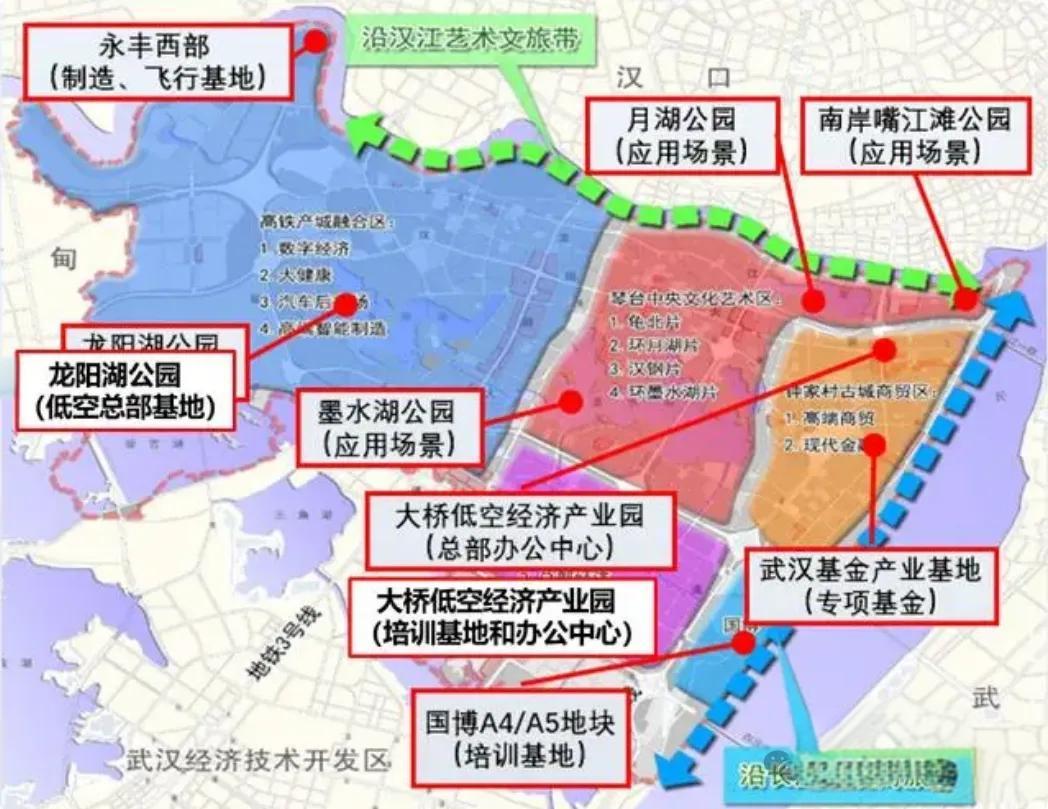 大橋低空經(jīng)濟(jì)產(chǎn)業(yè)園依托漢陽產(chǎn)業(yè)空間格局,全面謀劃低空經(jīng)濟(jì)產(chǎn)業(yè)總體規(guī)劃:以大橋系和蓮花湖周邊歷史建筑為總部辦公、研發(fā)基地和銷售中心輻射漢陽區(qū)域,國博地塊建立培訓(xùn)基地和運營保障中心,永豐西部打造制造基地和飛行基地,應(yīng)用場景立足知音文化旅游區(qū)向外拓展,北達(dá)龜山、東抵長江、南至國博,為產(chǎn)業(yè)鏈企業(yè)提供重要的承載空間。