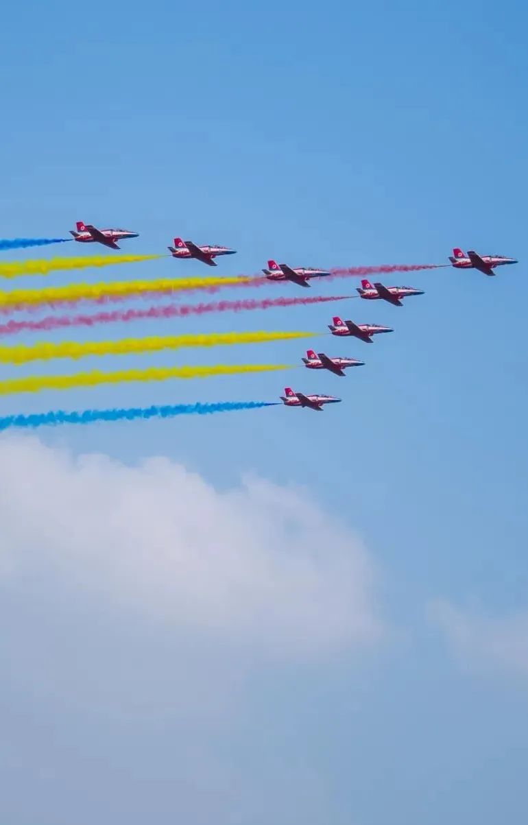 晴空之上,中國空軍“紅鷹”表演隊,俄羅斯、美國、法國特技飛行表演隊帶來“空地對話”,中國商飛C919、ARJ21以及洪都L15用轟鳴的引擎聲喚醒南昌“航空血脈”,擦亮天空之上的“英雄城”元素。