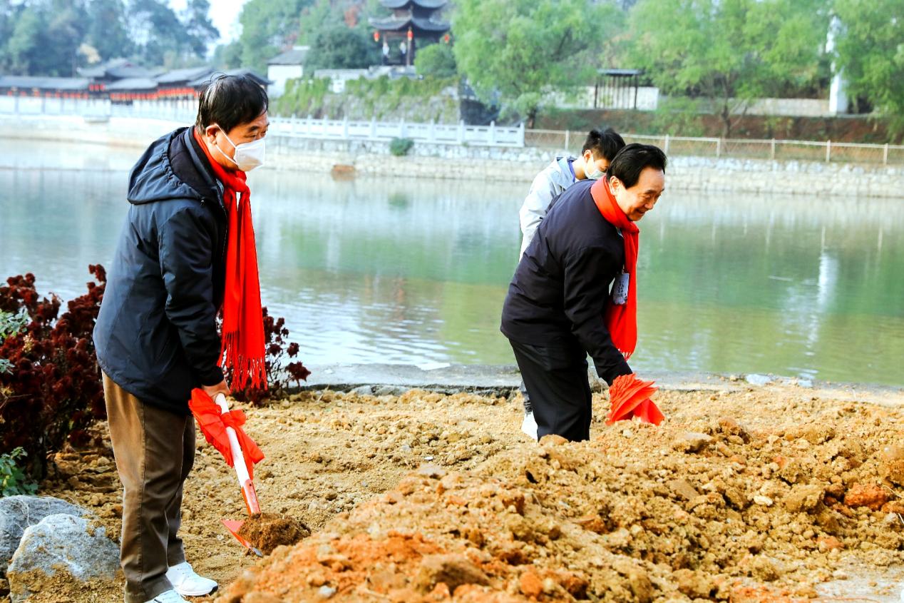 領(lǐng)導嘉賓為新栽到湖湘大地上的柳樹培土。