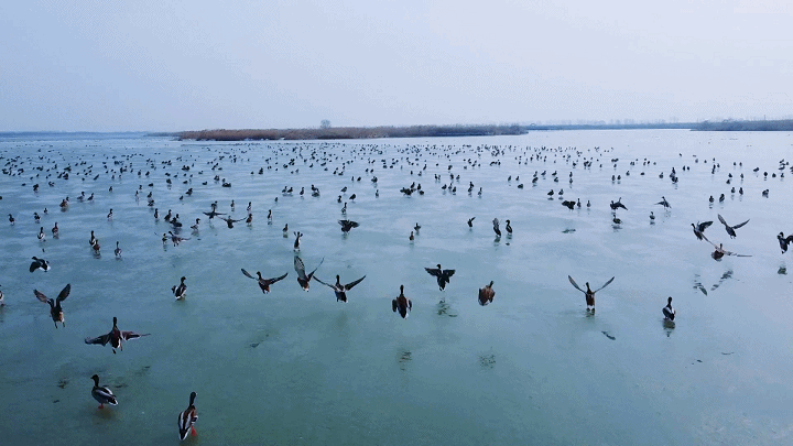 七里海群鳥輾轉(zhuǎn)盤旋(央廣網(wǎng)記者 周思楊 攝)
