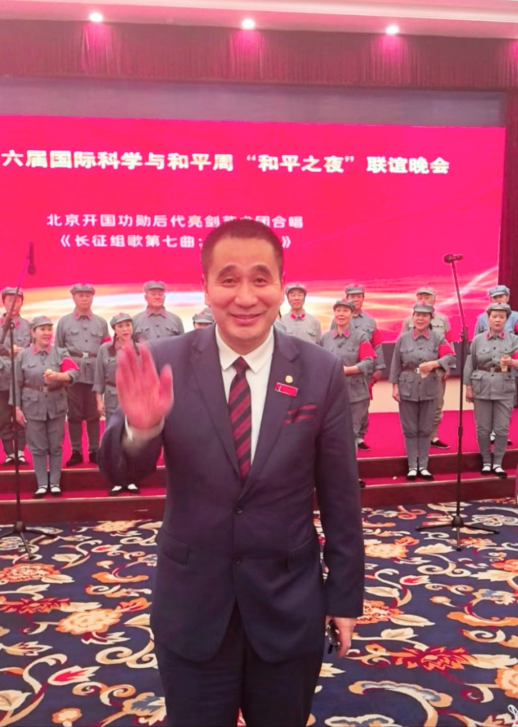 華國中代表中聯國興書畫院向國際科學與和平周中國組委會贈送作品并發表精彩致詞:科學、和平、發展是人類社會的永恒主題,是人類文明進步繁榮的基礎。和平、和睦、和諧是中華民族5000多年來一直追求和傳承的理念。中華民族是愛好和平的民族。和平、和合、和睦、和諧的追求深深植根于中華民族的精神世界之中,深深溶化在中國人民的血脈之中。讓我們共同胸懷為人類謀進步的光榮偉大夢想,腳踏和平發展的人間正道,吸吮綿延不斷的中華文明,中華民族同世界上一切愛好和平的民族攜手共進,手拉手,心連心。向著人類命運共同體的光明大道闊步前行。