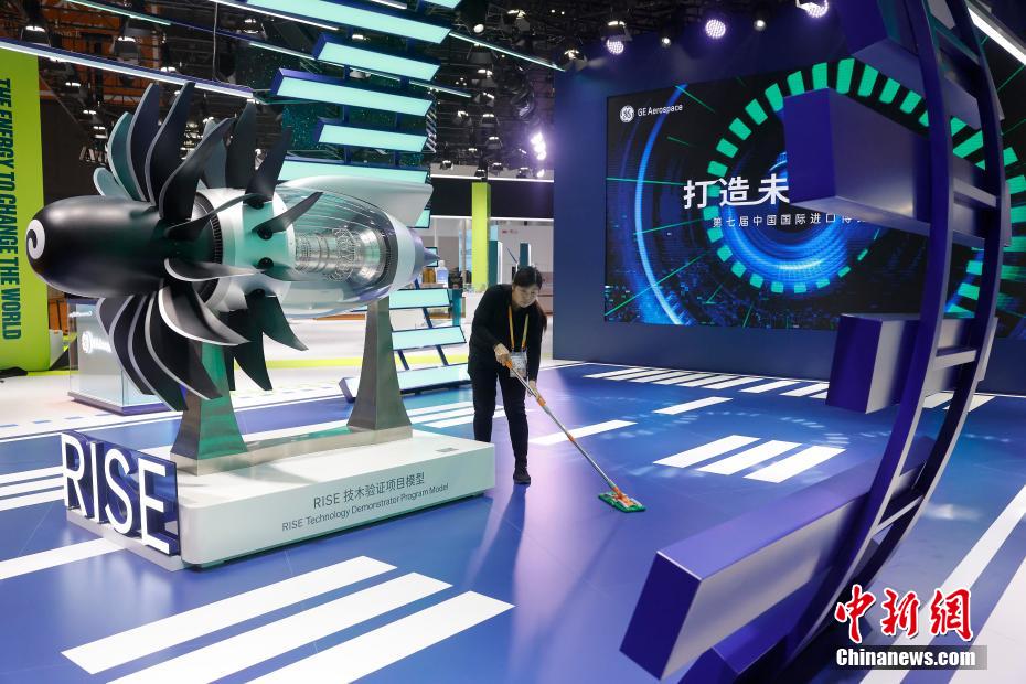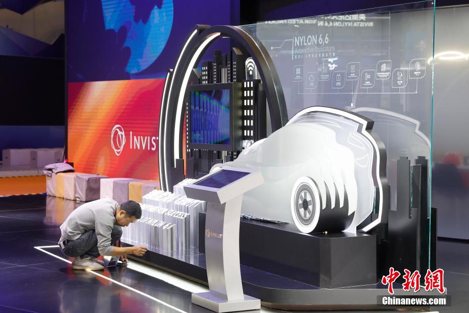 11月3日,工作人員對展臺進(jìn)行清潔。中新社記者 殷立勤 攝