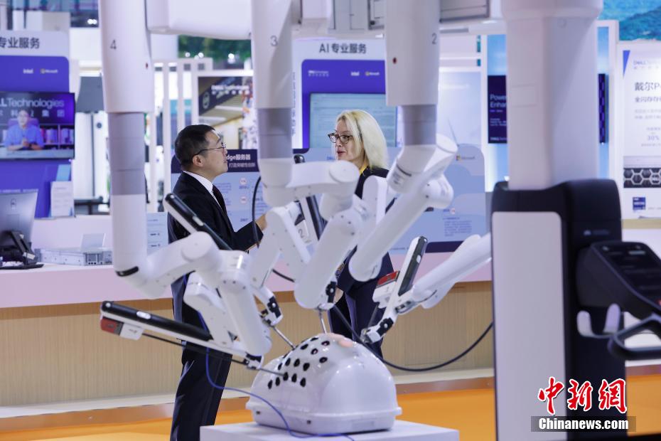 11月3日,工作人員調(diào)試即將全球首發(fā)產(chǎn)品。中新社記者 殷立勤 攝