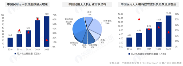 目前我國低空經濟企業增長快,通用航空市場持續擴大,以無人機產業為領先優勢,警用航空發展加速。對于整個低空經濟市場未來的發展,中央在十四五規劃發布的《國家立體交通網絡規劃綱要》中明確,到2035年國家支撐經濟發展的商用和工業級無人機預期達到2600萬架,同期,無人機駕駛員也將增長到63萬名。到2035年,中央對國家低空經濟的產業規模預期達6萬多億元。